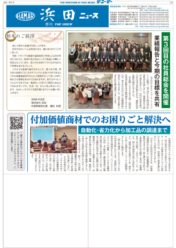 NEWS新着情報 浜田News2026年新年号! 2025/12/20 『浜田News2026年新年号』を発行しました。 本紙をご希望の方は当社 担当まで。 投稿ナビゲーション 前の投稿 - 浜田News2025年秋号!